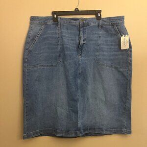 St John's Bay Women's plus A-line skirt, button zipper closure, 2 back slip pockets, 2 front slip pockets, knee length, LT Beachcomber, New with Tags, Size 24W