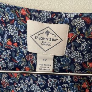 St John's Bay Women's Plus Size 1X Floral 3/4 Sleeve Peasant Top Blouse Boho Top