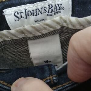 St. John's Bay Women's bootcut jeans in dark blue, size 16W. These jeans are perfect for casual wear and athleisure activities. They offer a comfortable fit and a classic look, ideal for everyday style. Upgrade your wardrobe with these versatile and stylish jeans! They are in great condition and ready for a new home.