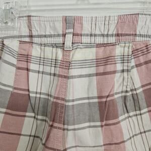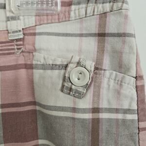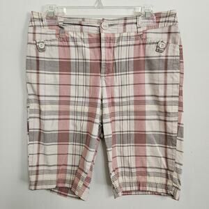 St. Johns Bay Women's Size 6 Bermuda Shorts Plaid Pink Tan Brown Pockets