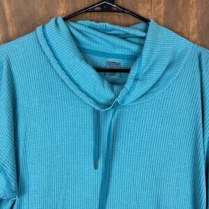 St Johns Bay Womens Sweatshirt Light Blue Cowl Neck Kangaroo Pocket Loose XXL