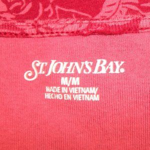 St. John's Bay Womens Top Blouse Size M Scoop Neckline Pleated Roses Red Pink