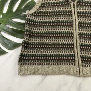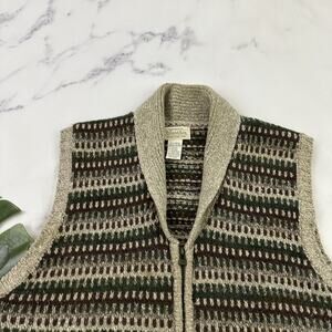 St John's Bay women's gray and green wool blend zip up sweater vest, size XL. It is free from any rips or stains. It measures about 46 inches around the bust and is about 26 inches long.