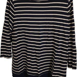 St. John's Bay Women's XL Black White Stripe Boat Neck 3/4 Sleeve Top