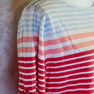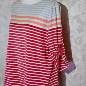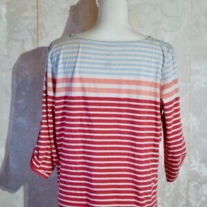 St. John's Bay Women's XL Multi-Color Striped Roll-Tab Sleeve Crew Neck Top