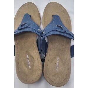 St John's Bay Women's Zion T-Strap Casual Sandal Size 12M Blue Faux Leather NWOT