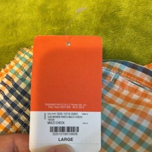 St. John’s Bay Woven Multi Checkered Sleep Pajama Pant Sz Large Orange Blue NWT