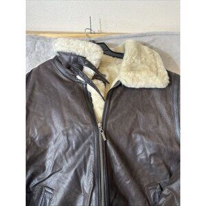 St Johns Bay XL Faux Shearling Lined Leather Jacket Brown Aviator Bomber Coat