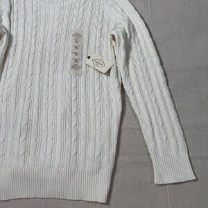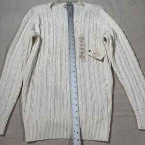 St John's Bay XL Off White Chunky Cable Knit Long Sleeve Crewneck Sweater XL NWT