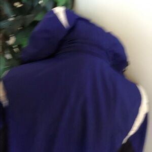 🤍 Colors are a little bright in the photos does have a tear in the front see pics zipper and snap closure Velcro adjustable sleeve 3 inside pockets 2 outside detachable hood approximate pit to pit 23 shoulder to hem 28