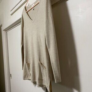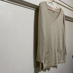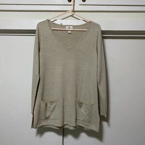 St. John's Bay long sleeve beige/tan sweater w/front pockets, size M