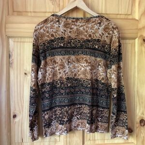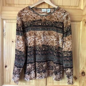 St. John’s Bay petite baroque floral print long sleeve knit top size LP. Gently used. 100% cotton. Armpit to armpit 21.5” across laying flat Length 24” from shoulder to hem Bundle two or more items for best price! Sorry no trades 😊 Like what you see? Please check out all my listings and follow me! Instagram: dejavuapparel Pinterest: dejavuapparel Twitter: _dejavuapparel JAM St. John’s Bay petite baroque floral print top size LP