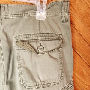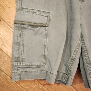 St. John's Bay size 34 green cargo shorts. 100% cotton. These have a couple very small frays around the waist, and some white marks on the back pockets. otherwise great condition! smoke free home