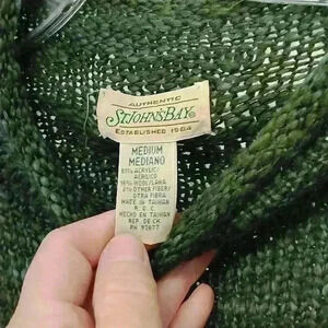 multiple green colors to the sweater beautifully made you can see the light through it so maybe we're a cami underneath