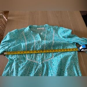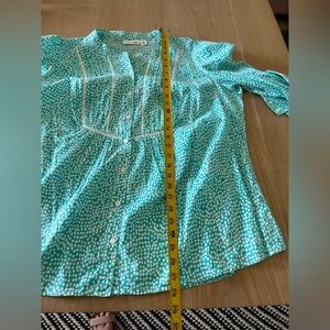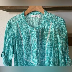 St. John’s Bay|Mint Blue Polka Dot Button Down Long Sleeve Blouse with Crotchet•