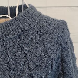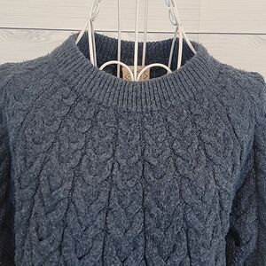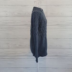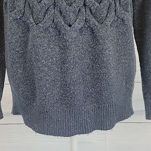 Beautiful and comfortable knit sweater by St. John's Bay with a crew neckline, long sleeves, and ribbed knit cuffs and hemline. Good pre-owned condition with normal signs of wash and wear. This sweater is naturally fuzzy all over. I'm labeling this grey, but it has strong blue undertones.