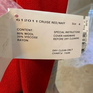 NWT never worn St John's by Marie Gray Cruise wear jacket/blazer. Gorgeous Red with navy - navy 'shoulder boards' (Navy term) across shoulder area. Navy blue collar.