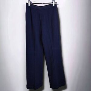St John's Womens Pants Sz 12 Navy Blue Santana Knit Pull Ons Pleat Front Vtg 02