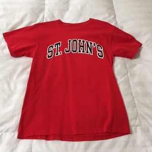 Beaming red St. John's t-shirt has been worn a few times and you can tell it's been in some washes. (100% Cotton). Overall it is in perfect condition.