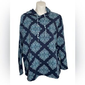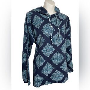 St. John’s Bay Mosaic Hoodie Sweatshirt Medium Blue Athleisure Streetwear