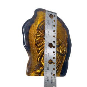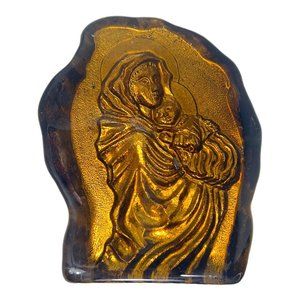 This beautiful piece depicts St.Joseph holding baby Jesus with 3D effect in bronze colored glass, perfect decor for home or office.