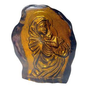 St. Joseph With Baby Jesus Etched 3D Bronze Look Glass Paperweight
