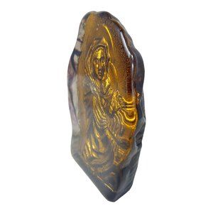 This beautiful piece depicts St.Joseph holding baby Jesus with 3D effect in bronze colored glass, perfect decor for home or office.