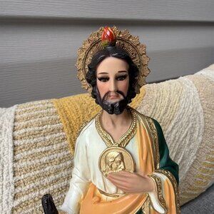 St Jude Figurine Statue Resin Statue Made in Mexico...measures 12" tall....nice condition