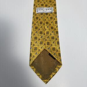 St. Loren Made in Italy 100% Silk Flower Pattern Men's Dress Tie Yellow