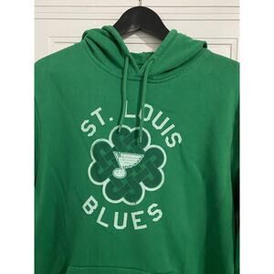 St. Louis Blue green St. Patrick's Day themed hoodie sweatshirt. Men's size large. Made by Fanatics.