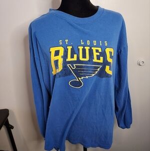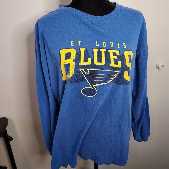 •St. Louis Blues Long Sleeve Top Size XL NHL Blue, Yellow And White. Don't know the material the tag was cut off, shown in photo 6. The color is darker in person. In good pre-owned condition. Bundle for a better price! The shirt is a bit worn out.