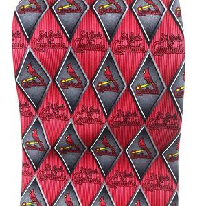 St. Louis Cardinals MLB Necktie Baseball 100% Silk Diamond Pattern Red Gray Tie