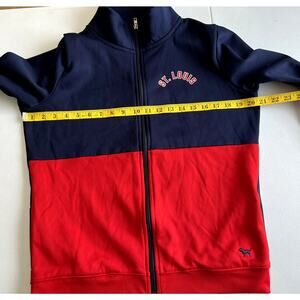 MLB St. Louis Cardinals PINK Victoria's Secret Jacket zip Up Sweater Women Sz Medium Blue Red Pockets Long Sleeve Sports Athletic Baseball Activewear Outdoor
