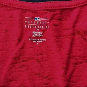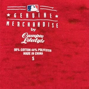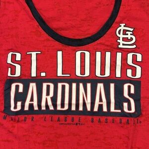 Red St. Louis Cardinals t-shirt with black sleeves. Perfect for fans.