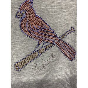 St Louis Cardinals Womens Raglan Shirt Rhinestone Logo Gray/Red Size Medium? No size tag. 22” length, pit to pit 18”.