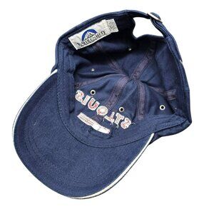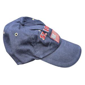 This navy blue baseball cap features a bold "St. Louis" embroidery and American flag design. The adjustable strap ensures a snug and comfortable fit.
