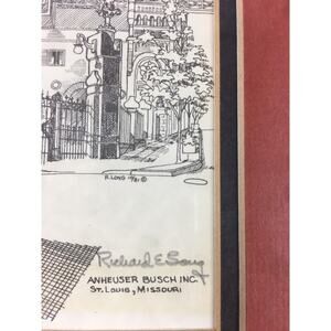 Offering these two vintage framed and signed art prints of drawings by St. Louis artist Richard E. Long. Included is a print of St. Louis University High School and a second signed print of Anheuser Busch's headquarters. Both come as found, matted and framed. Outside frame dimensions are 10 x 8. Frames are the same size, but not identical. See photos. And both are signed in pencil by the artist. Both show light age related yellowing. They are odor free.