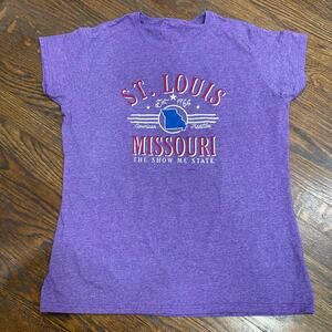 St Louis Missouri Tee Women's Cut The Show Me State Graphic Purple T-Shirt