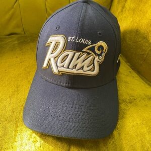Vintage St. Louis Rams cap in navy with gold embroidery. Perfect for fans. NFL