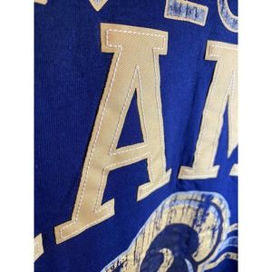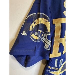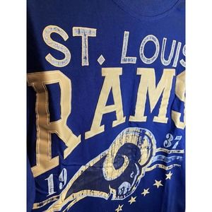 Show your support for the St. Louis Rams with this premium stitched letter NFL football t-shirt in size S. The blue shirt features the team logo and is officially licensed by NFL Team Apparel. Perfect for game day or everyday wear, this shirt is made of high-quality materials. Represent your favorite team with pride and style.