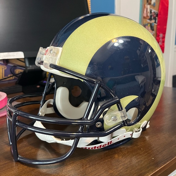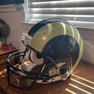 Authentic St. Louis Rams Riddell football helmet. Excellent condition. A few marks but nothing noticeable. Perfect for sports enthusiasts. My husband is from St. Louis he is retired Navy he actually got this at the Rams complex.