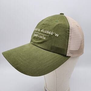 St. Lucia Coordinates West Indies Cap Hap Trucker Mesh Snapback Green Tan OS