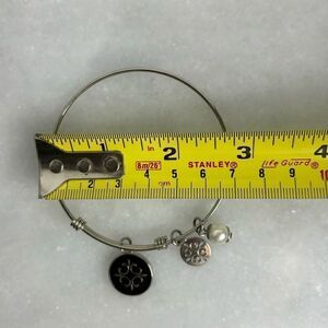 Alex and Ani St Magnus Cross On Round Charms & Faux Pearl Silver-tone Bangle Expanding Bracelet OS