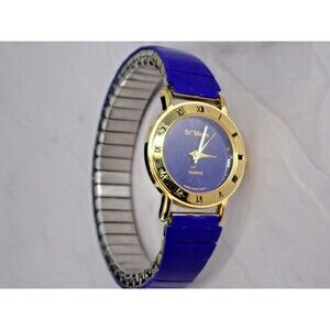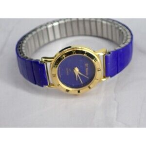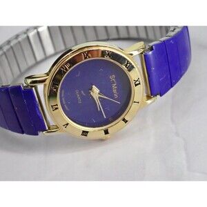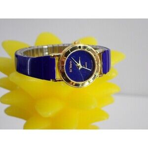St. Marin Watch Cobalt Blue Band Gold Bezel Blue Dial WORKS New Battery VTG