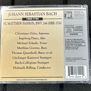 St. Matthew Passion Bach BWN 244 Helmuth Rilling Conductor 3CD 0104