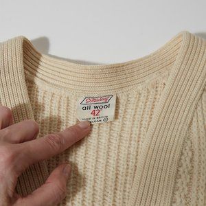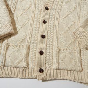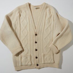 Great vintage condition, chunky-knit 100% wool cardigan with leather buttons.