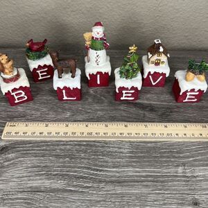 St Nicholas Square Believe Block Set 7Pc Holiday Christmas Decor Snowman Tree