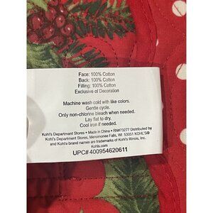 St. Nicholas Square Holly & Berries Quilted Table Runner 100% Cotton Reversible