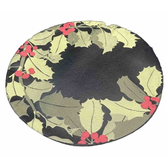 Add a festive touch to your holiday table setting with these St Nicholas Square round Christmas wreath placemats. The set of 5 features a beautiful design of holly berries and a wreath, perfect for adding some cheer to your dining experience. These placemats are made from a durable and easy to clean polyester/dacron material, ensuring they can be used for seasons to come. They have a diameter of 15 inches. These in excellent used condition. Please see photos for an accurate depiction of condition, as they are included as part of the description. Please reach out with any questions you may have prior to purchasing these placemats.