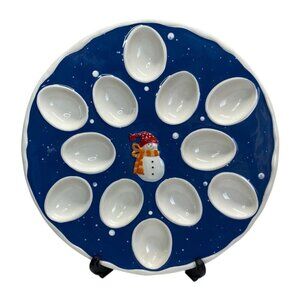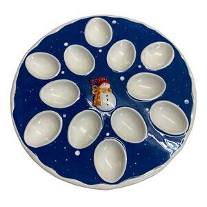 St. Nicholas Square Snow Days Christmas Snowman 12 Deviled Egg Plate Ceramic